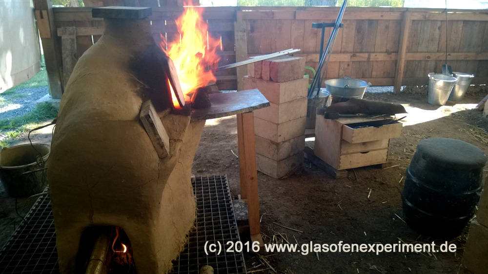 kleinen Glashütte nach römischem Vorbild, Archäologischer Park Cambodunum (APC, Kempten im Allgäu; in Zusammenarbeit mit dem Lehrstuhl für Provinzialrömische Archäologie der Ludwig-Maximilians-Universität München) |